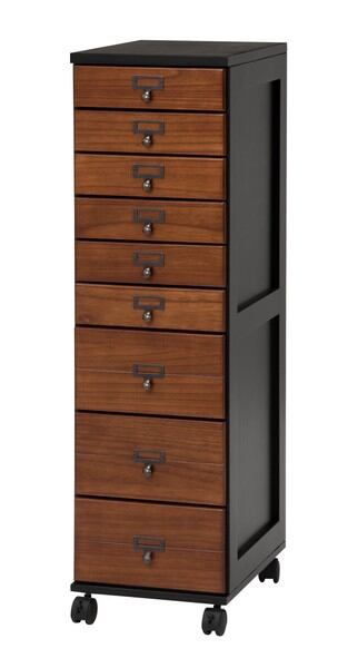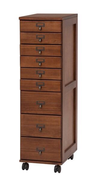 ☆天然木キャスター付きチェスト9段 ブラウン 1点 等
