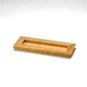 広めの縁を木目で彩り、セットした珍味入れと合わせて多彩に演出できる長角トレイです