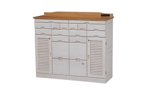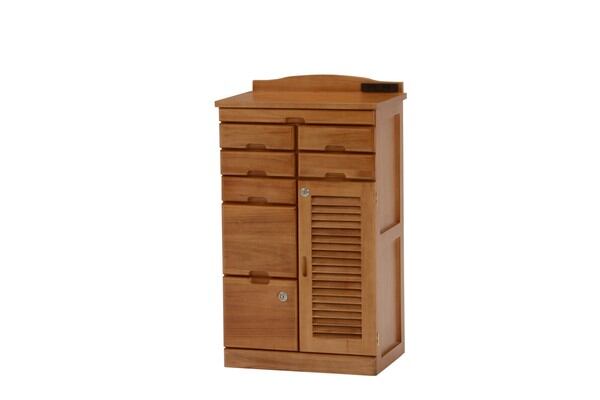 鍵付き引き出しいっぱいFAX台 コンセント付 天然木 / 家具・インテリア 収納家具 キャビネット