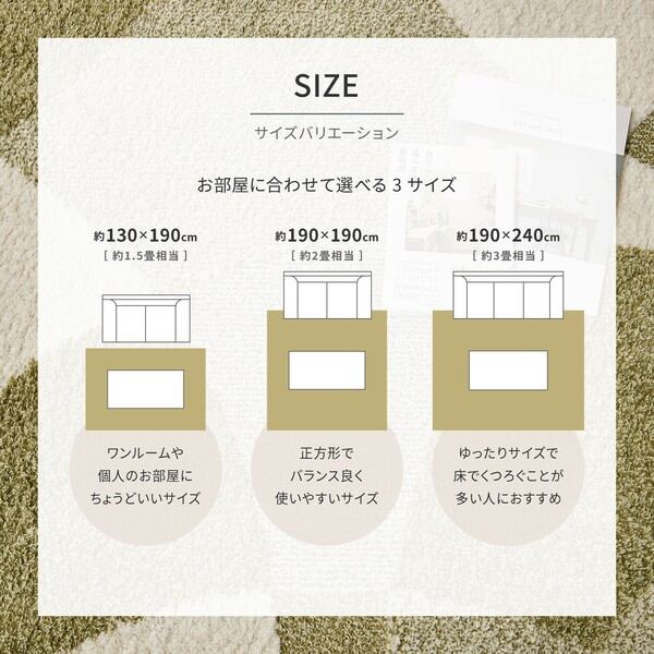 タフトラグ 防ダニ 抗菌 抗ウイルス アレル物質低減 消臭 日本製「ジャスト」 2カラー/3サイズ / 家具・インテリア ファブリック・敷物 ラグ・マット