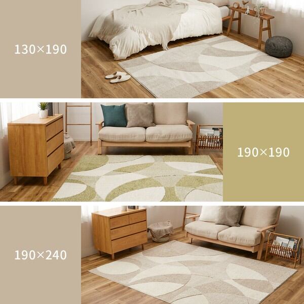 手触りなめらかなループパイルとカットパイル異なるパイルの組み合わせで表現されたデザインでお部屋におしゃれなアクセントを添えます