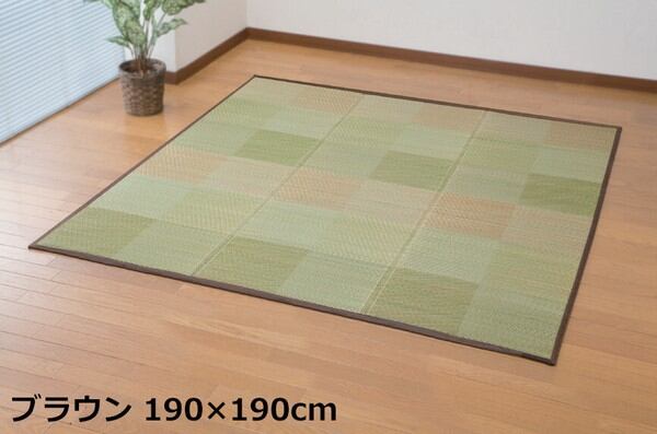 ★ふっくら撥水い草ラグ 190×190cm ブラウン 1点 等