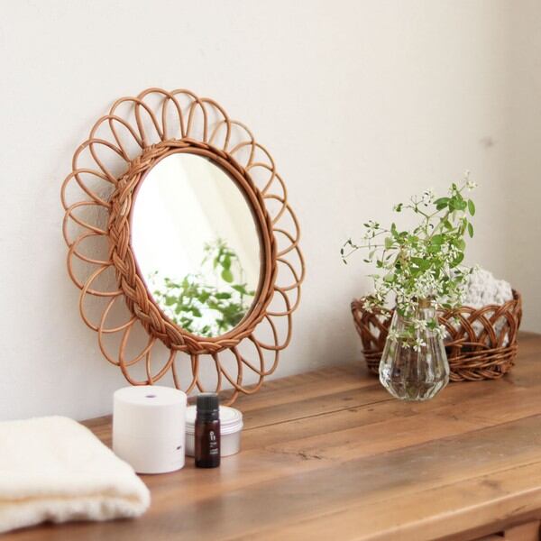 ヨーロッパの蚤の市でみつけたような風合いと優しい印象に感じるフラワーミラー