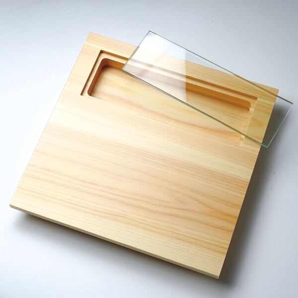★桧・硝子窓付料理皿 正角 中 1点