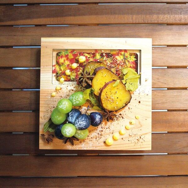 硝子の窓の中に季節感やお好みの演出を入れて、華やかな一皿として料理を提供できます