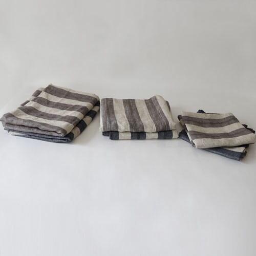 使い込むほどに風合いを増すリネンをシックで飽きのこないストライプ柄にデザインしました