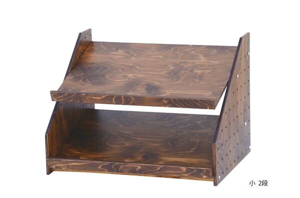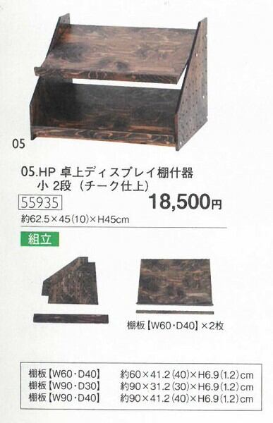 HP卓上ディスプレイ棚什器 チーク仕上 小2段/大2段/大3段 ウッディトレイ 什器・店舗備品 日本製 / 店舗什器 ディスプレイ什器