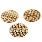 ひのき細密コースター 丸 青海波/麻の葉/七宝 無塗装/EXP塗装付 日本製 / 生活雑貨 食器・キッチン キッチン雑貨