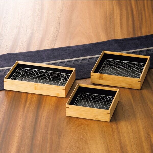 竹・天ぷら盛皿 内黒 (ステンレス目皿付) 長角/正角5寸/正角4寸 / 生活雑貨 食器・キッチン