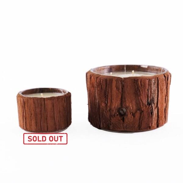 木の幹をイメージし、見た目にもアウトドアシーンを盛り上げてくれるキャンドルです