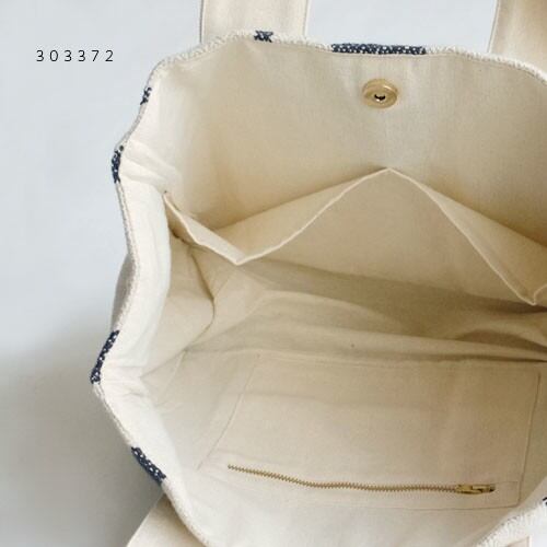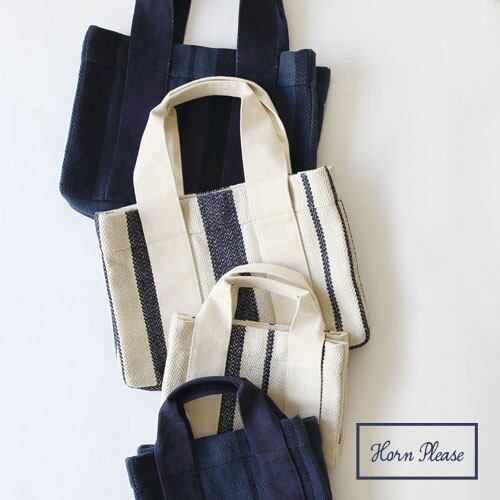 太さの異なるストライプが施されたキャンバストートバッグです