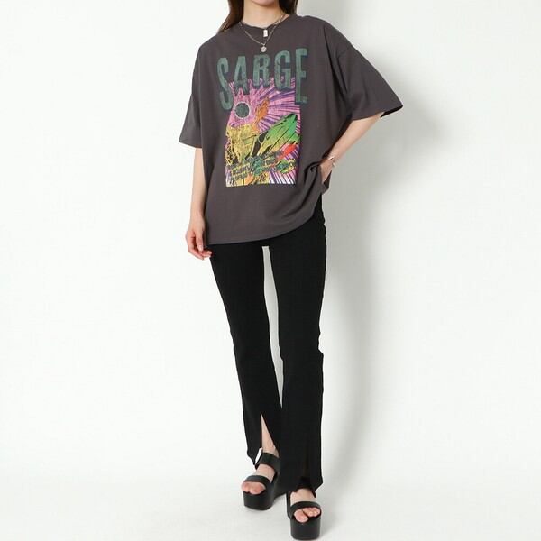 アメコミをイメージしたPOPな色合いのプリントが目を引くTシャツの登場★アメコミ調のスレプリントが存在感抜群♪一枚着でもさりげなくヴィンテージ感を出せるアイテム◎パンツでもスカートでもボトムを選ばず幅広いスタイリングに使える一枚です☆