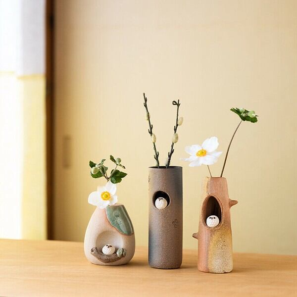 信楽焼 陶器 陶置物 花器 花瓶 ceramic pottery made in japan porcelain 窯元 焼き物 土物 シンプル