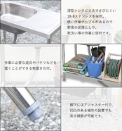 脚部には物置台付きで、作業に必要な道具やバケツ等を置くのに便利です