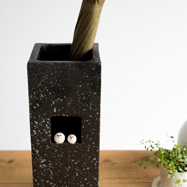 ペアふくろうスパタ正角傘立て 日本製 信楽焼 / 家具・インテリア インテリア雑貨