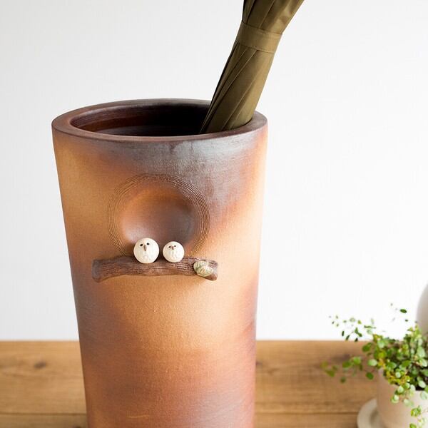 火色ペアふくろう枝のり傘立て 信楽焼 日本製 / 家具・インテリア インテリア雑貨