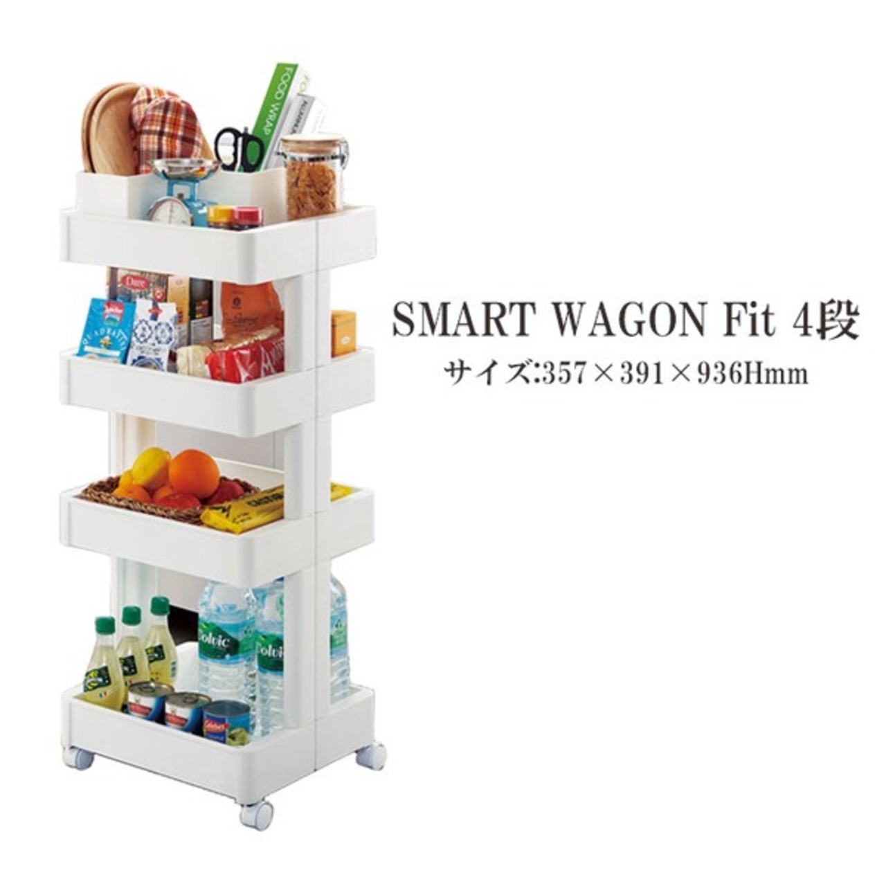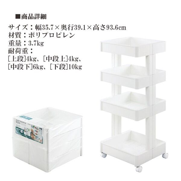 360度どの角度からも取り出しやすいオープンワゴン4段タイプです
