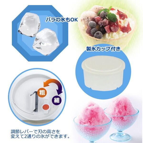 調節ネジで「ふわふわ氷」と「シャリシャリ氷」をお好みに合わせて楽しめます