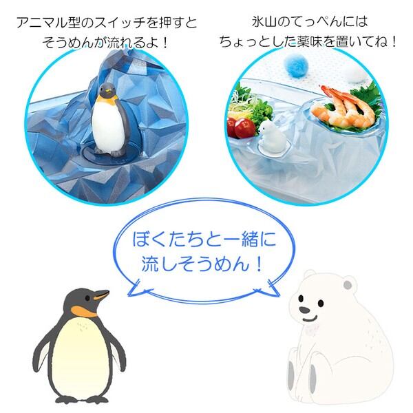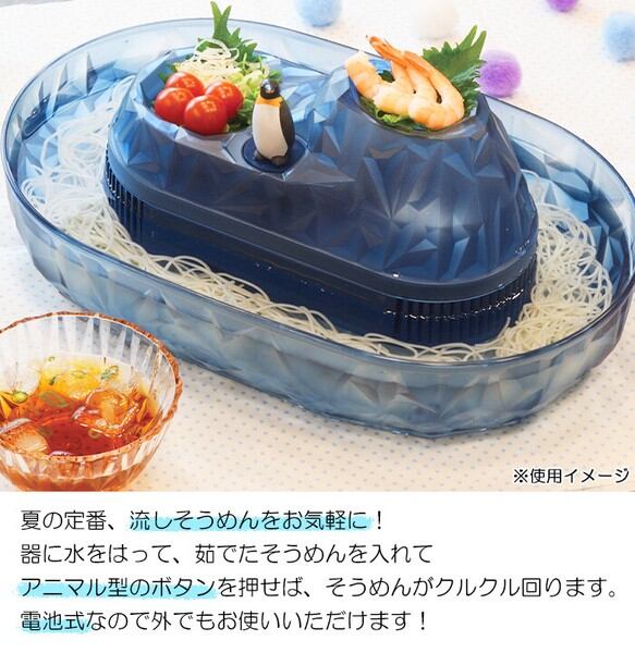 立体のしろくまがかわいい電池式そうめん流し器・流器に水をはって、茹でたそうめんを入れるとクルクル回転・どこでも使える電池式(別売)なので持ち運び可能