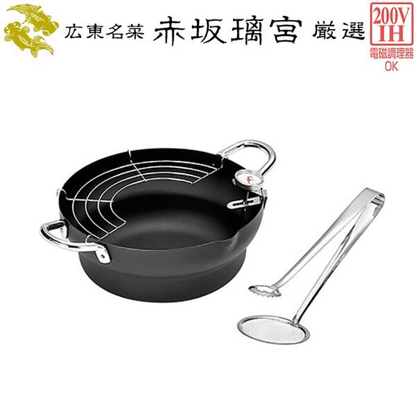 赤坂璃宮 厳選 天ぷら鍋24cm 温度計・揚げ物トング付 ART-502 / 生活雑貨 食器・キッチン 調理器具 フライパン