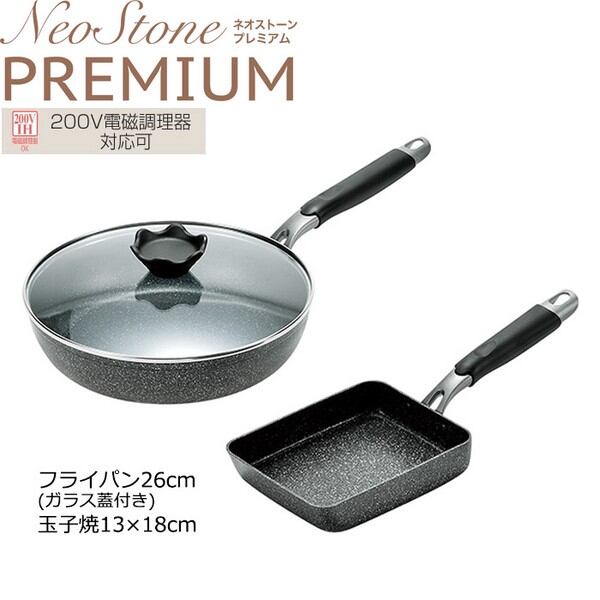ネオストーンプレミアム フライパン26cm(ガラス蓋付)&玉子焼13×18cm NSP-801S / 生活雑貨 食器・キッチン 調理器具