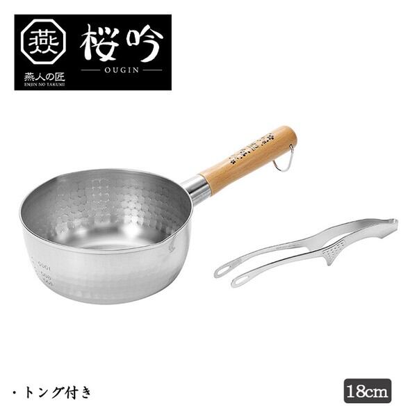 燕人の匠[桜吟] ステンレスゆきひら鍋18cm トング付き OGS-501 / 生活雑貨 食器・キッチン 調理器具