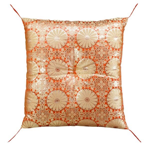 ひご注意を・鮮やかな緋色に金襴の菊をあしらった華麗で高級感ある座布団です