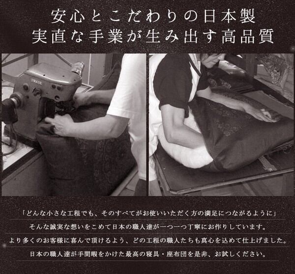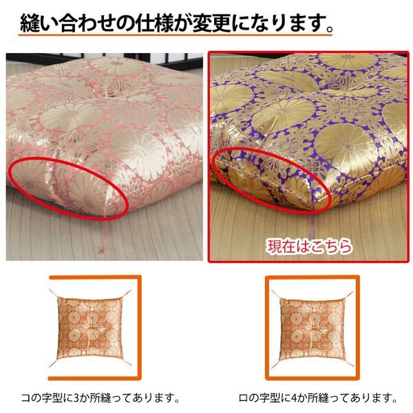 従来品は裏面と表面が一続きの生地を座布団の3辺のみを縫い合わせて製造しておりますが、現在販売している商品は4辺を縫い合わせて製造しております