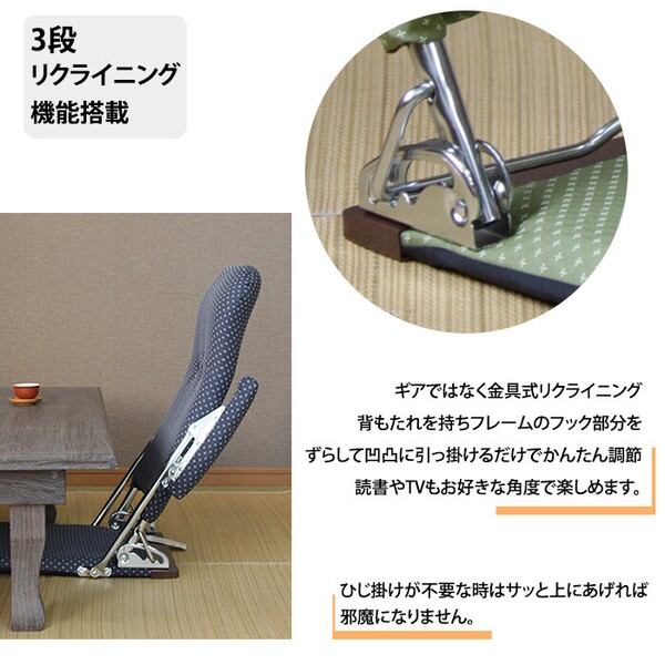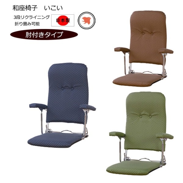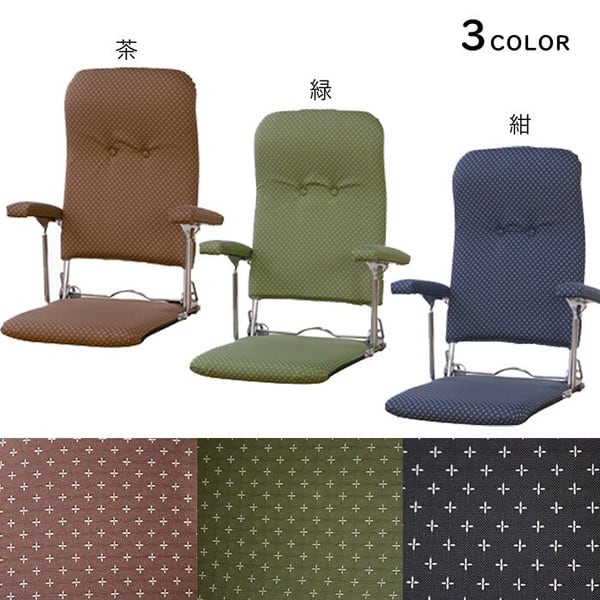 折りたたみ肘付き和座椅子 3段階リクラインニング機能付 日本製 / 家具・インテリア チェア