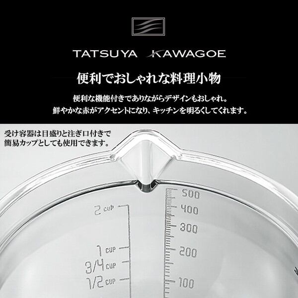 受け容器は目盛りと注ぎ口付きで簡易計量カップとしても使用できます