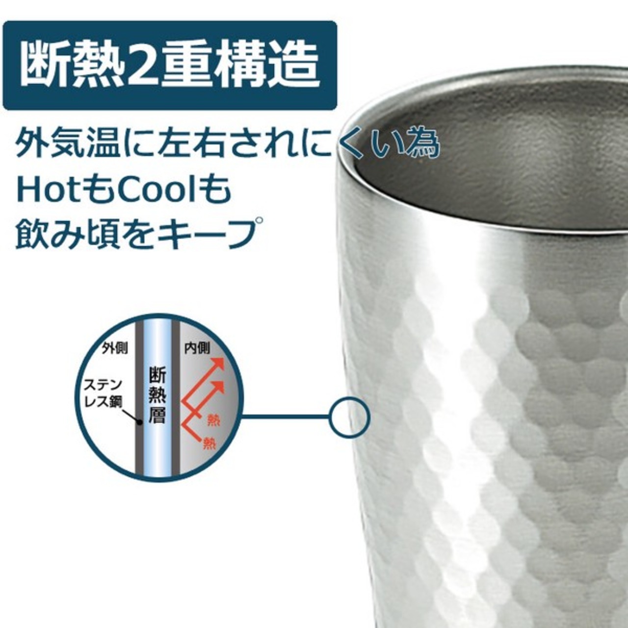 「断熱二重構造」で冷たさ長持ち!ステンレスタンブラー