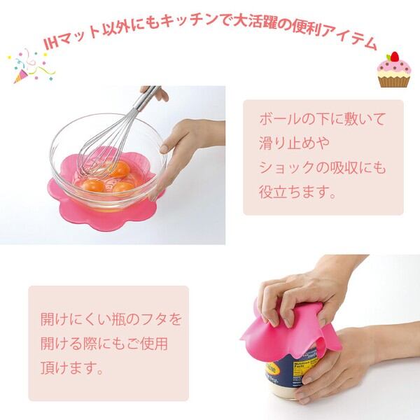 IHのトッププレートに密着し、鍋やフライパンのズレを防ぎ、カチャカチャ音緩和します