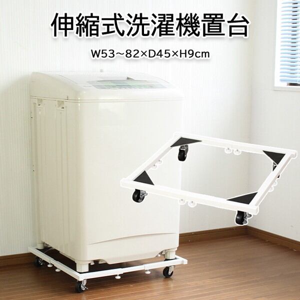 ご家庭の洗濯機にサイズ調整ができる、伸縮式の洗濯機台です