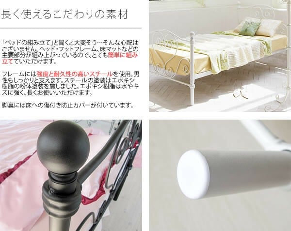 丈夫なアイアンを使用した安定感のあるベッド