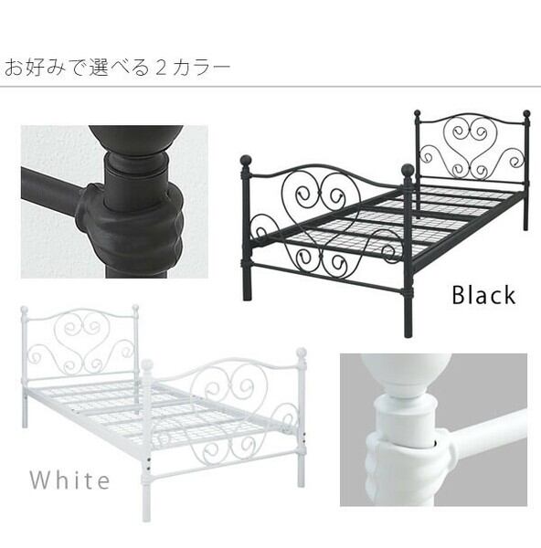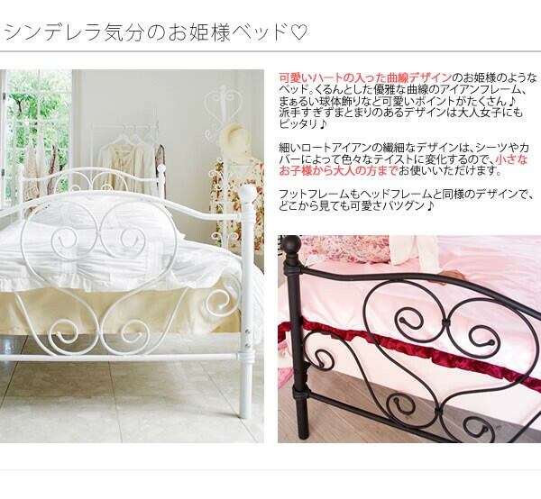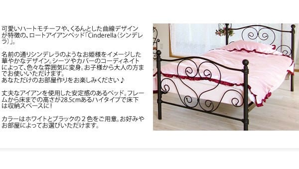 可愛いハートモチーフや、くるんとした曲線デザインが特徴の、ロートアイアンベッド「Cinderella(シンデレラ)」
