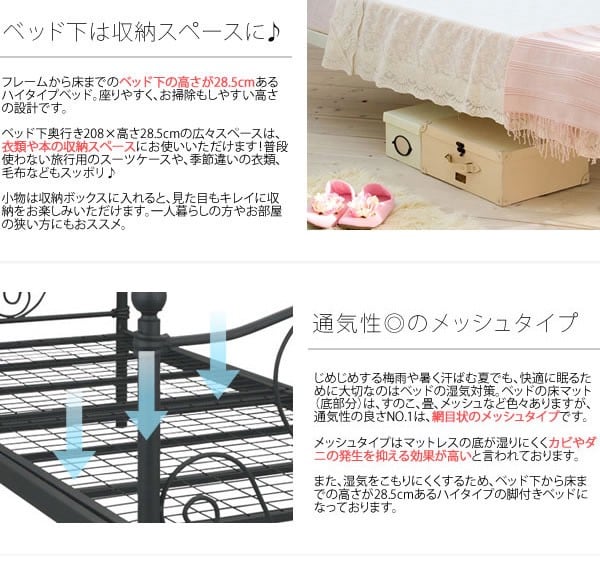 フレームから床までの高さが28.5cmあるハイタイプで床下は収納スペースに!