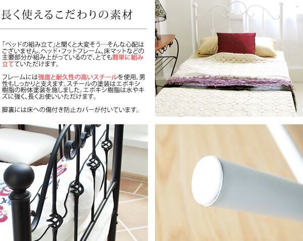 丈夫なアイアンを使用した安定感のあるベッド