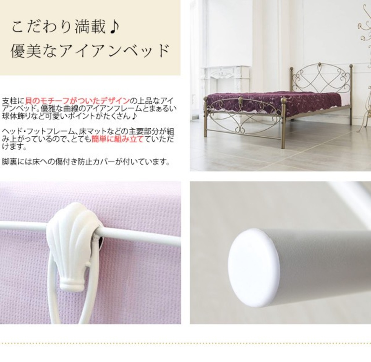 女の子なら一度は夢見る可愛いデザインのアイアンベッド