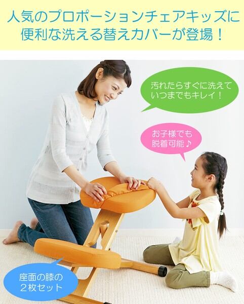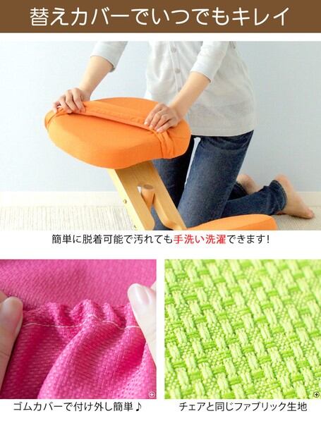 座面用カバーと膝用カバーの2枚セットで、手洗い洗濯が可能ですので汚れてもすぐ洗って清潔♪