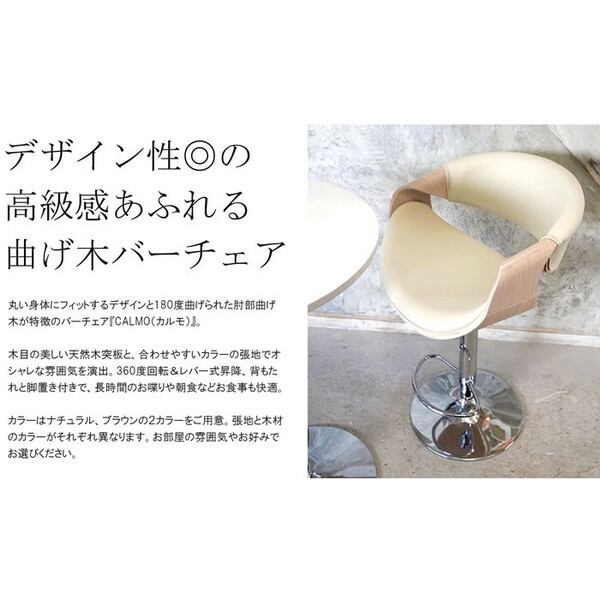 丸い身体にフィットするデザインと180度曲げられた肘部曲げ木が特徴のバーチェア『CALMO(カルモ)』