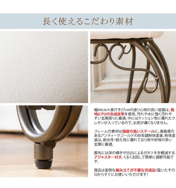 クッション入りの座面は座り心地も良く、靴の脱ぎ履きをラクにしてくれます