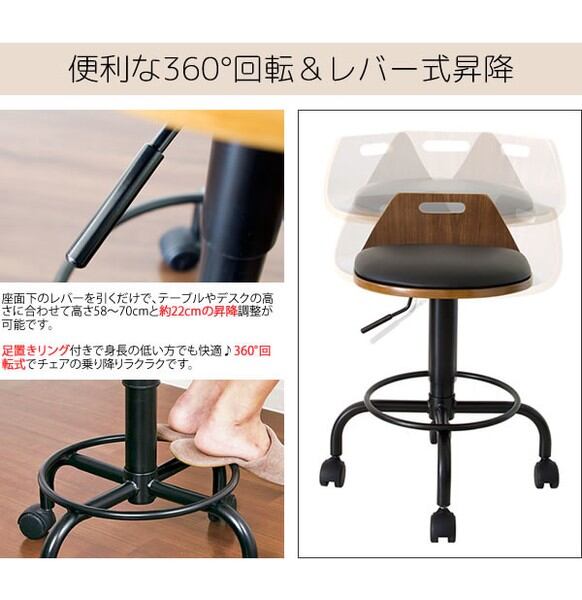 スムーズに移動できるキャスター、360度回転&レバー式昇降付きで、利便性バツグン♪