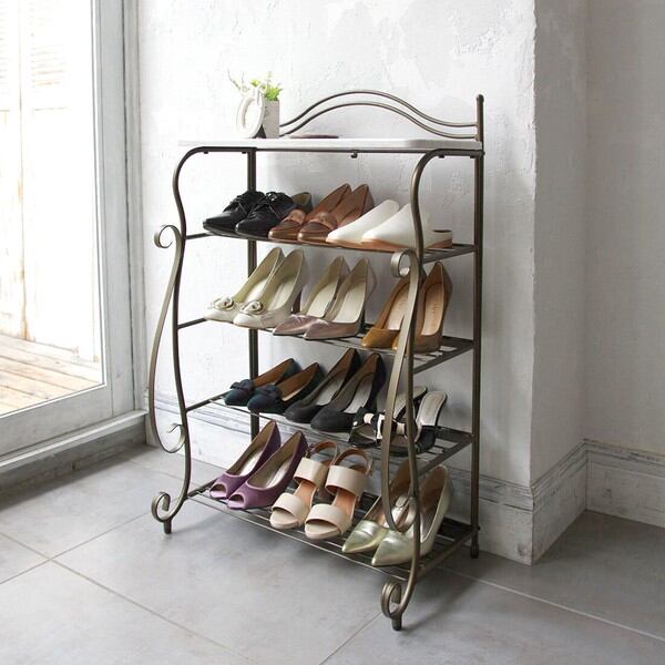 曲線をあしらった装飾の洗練されたデザイン、心地よさを醸し出すアンティークゴールドが人気の『Celestia(セレスティア)』シリーズのシューズラックです