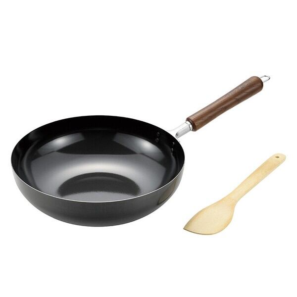 新潟県燕市産「燕熟の技」シリーズの竹ヘラ付き鉄製炒め鍋