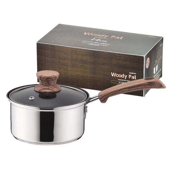 ウッディパル 3層底ガラス蓋付片手鍋14cm(内面ふっ素加工) / 生活雑貨 食器・キッチン キッチン雑貨