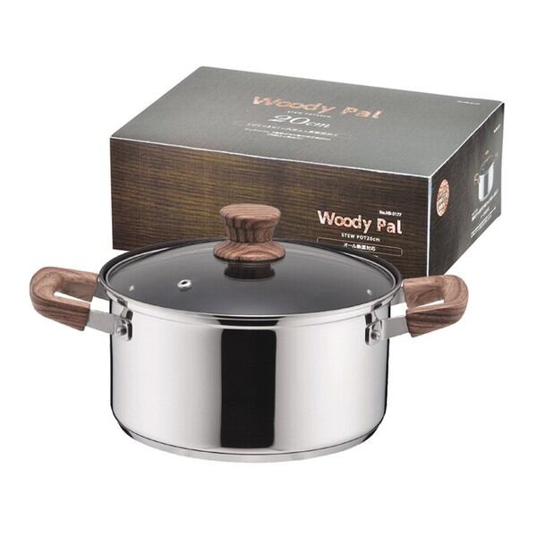 ウッディパル 3層底ガラス蓋付両手鍋20cm(内面ふっ素加工) / 生活雑貨 食器・キッチン キッチン雑貨