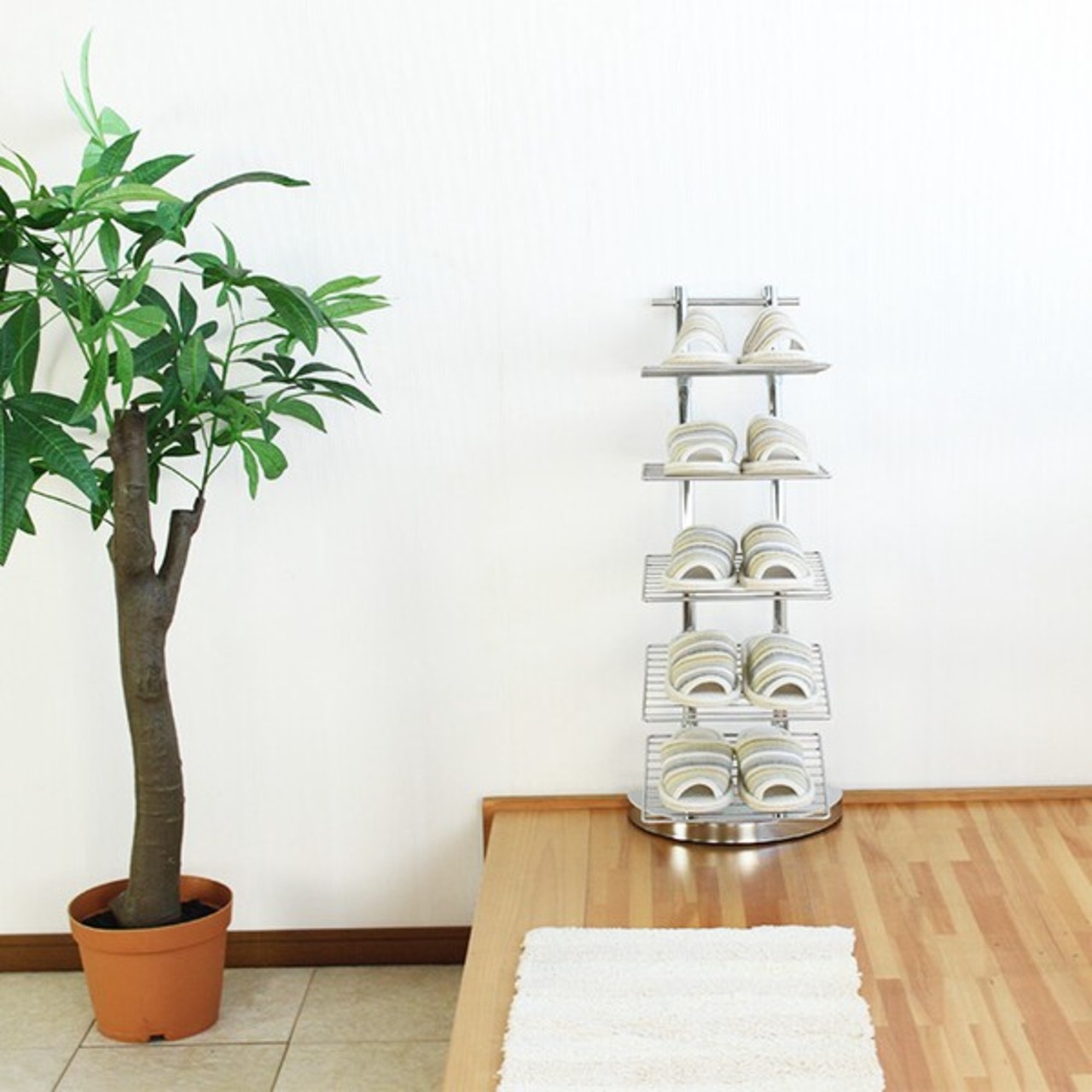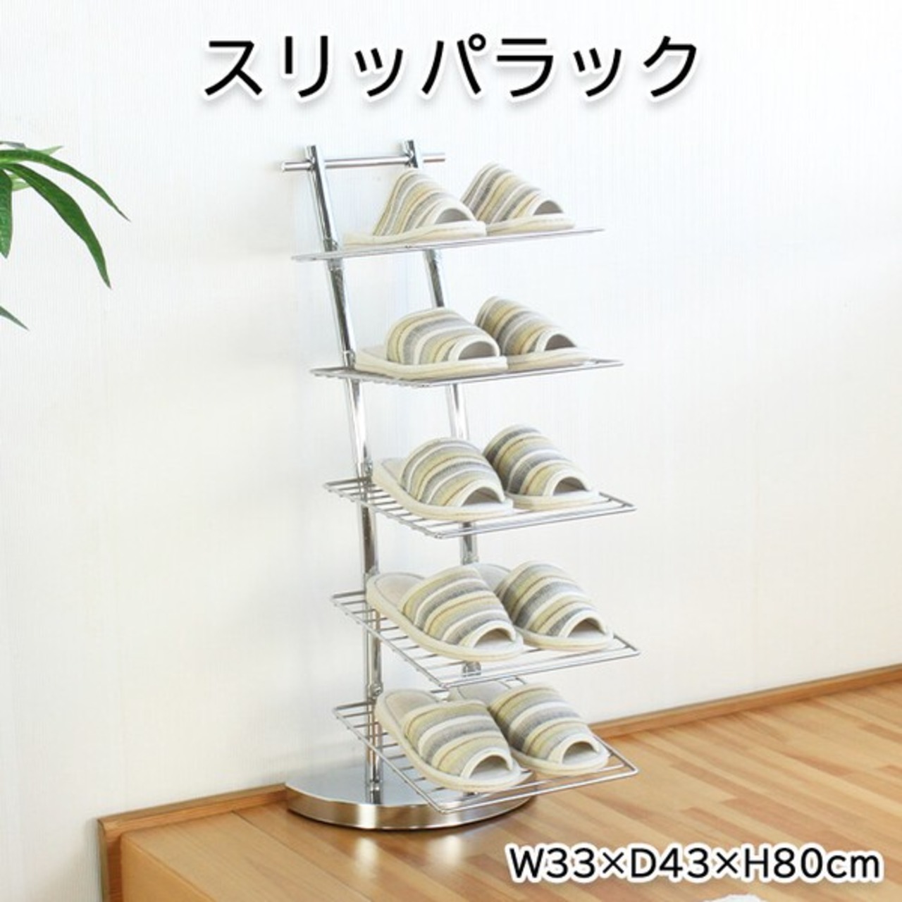 ■光沢が美しいクロムメッキ加工が施されたスリッパラック