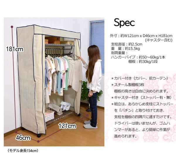 約幅121cm×奥行46cm×高さ181cm(キャスター含む)