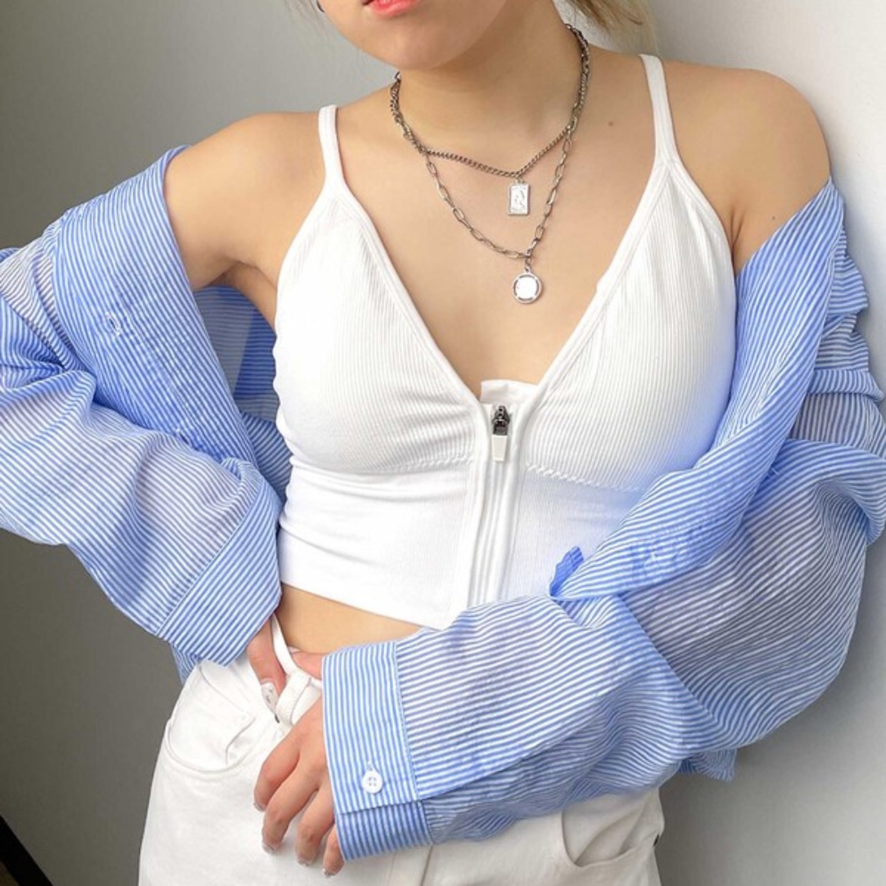 フロントZIPブラトップ / ファッション レディースアパレル トップス キャミソール