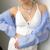 フロントZIPがポイントの伸縮性のあるブラトップが登場★パッド入りなので、インナーレスで着用出来る優秀アイテム♪1枚での着用はもちろん、ジャケットやシャツをさらっと羽織った大人こなれスタイルがおすすめ◎シーズン問わず着回ししやすいので、ワードローブに1着は持っておきたいアイテムです☆※カップ取り外し可能